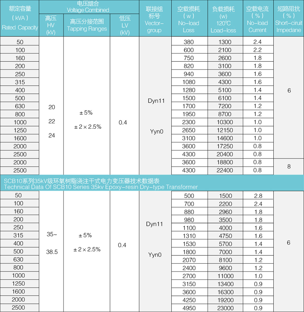 SCB9, SCB10, SCB11 series resin insulated dry power transformer